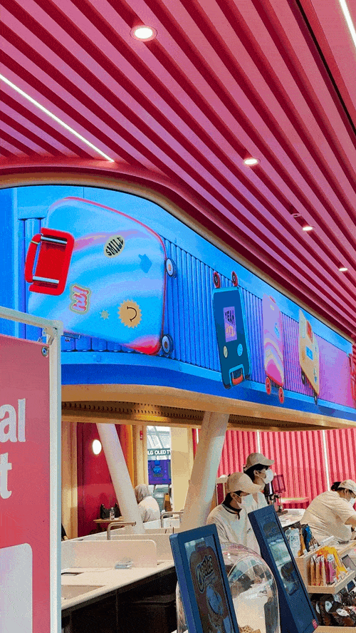 I participated in the production of an art video for the large media wall at the Baskin-Robbins location in the departure hall of Incheon International Airport. The piece visualizes countless objects pouring onto a conveyor belt and gradually transforming into ice cream as they pass through various stages of the process.