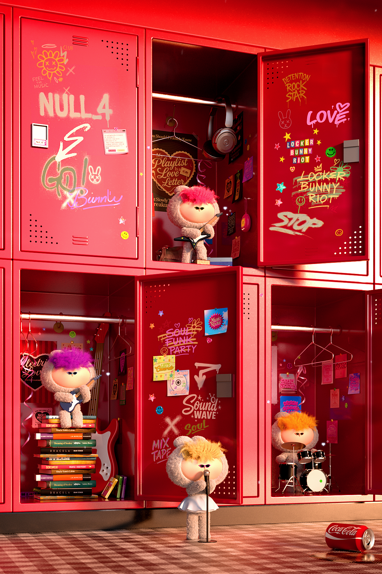 When the locker door opens, it reveals a tiny concert stage—as if escaping from reality.